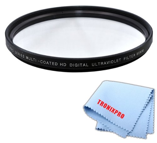 Tronixpro 86mm Pro Series High Resolution Digital Ultraviolet UV Protection Filter for For Sigma 150-500mm f/5-6.3 DG OS HSM APO Autofocus Lens, Sigma 180mm f/2.8 APO Macro EX DG OS HSM Lens, Tamron 200-500mm + Microfiber Cloth