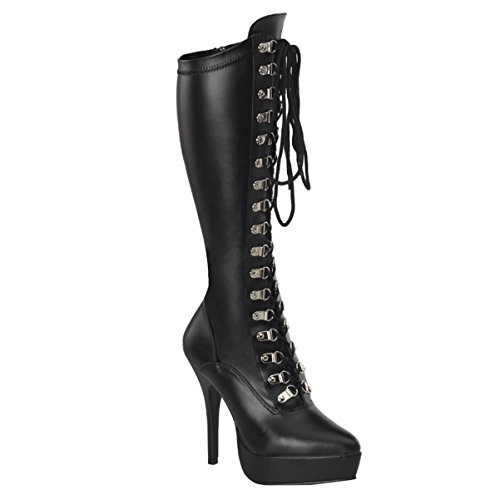 5 1/4 Inch Sexy High Heel Knee High Boots Lace Up Boots Mini Platform Black Matt