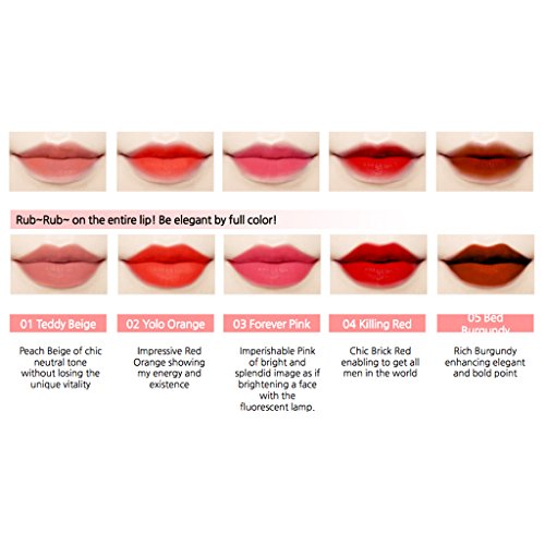 DLA Velvet Finish Tint 5g - 5 Colors / Highly Saturated Full Color Lip Mousse with Velvet Matte Finish (04 Killing Red)