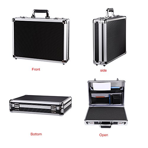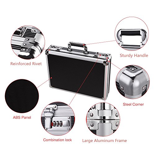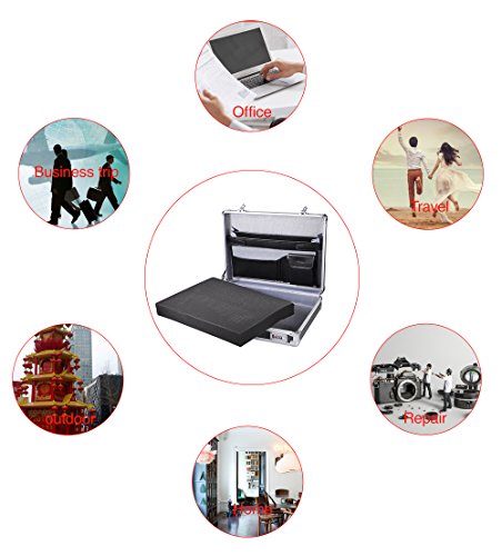 Product Description Designed with a high-tech, professional style , this sturdy polished aluminum briefcase carries all the business essentials you need for a day at the office or a week out of town. Lined interior features plenty of pockets for your cell phone, folders and more, the foam can be easily cut so you can store things inside the foam and have it safely locked in place and protected. The and dual combination locks provide security and peace of mind. 0