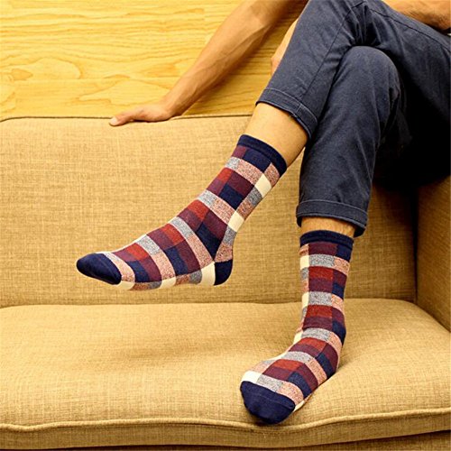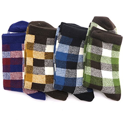 -. Binding : Apparel -. Brand : XYPyozusox -. Department : mens -. Feature : 80% Cotton, 10% Polyester, 10% Spandex / Fits Shoes Sizes 6-12 (Sock Size 10-13) / Comfortable Elastic & Breathable Cotton Blend / SOFT WASHED & SCENTED. These stylish, men's dress socks boast seamless craftsmanship, a reinforced toe, 200 thread count and gorgeous, colorful patterns to match your personal style. / SATISFACTION GUARANTEED - If you are not 100% pleased with our product, feel free to contact us to resolve the issue or you can ask for a refund. We are here to make sure you are happy with your experience. -. ProductGroup : Apparel -. ProductTypeName : SOCKSHOSIERY -. Size : One Size -. Title : Mens Dress Socks plaid Pattern Formal Business Mid Calf- Toe Heel REINFORCED