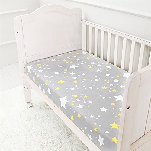 100% Jersey Cotton Crib Sheets, Top Quality Nursery Bedding for Boy or Girl, 2 Pack Soft Baby Shower Gift in Gray with Grizzlies and Yellow Stars
