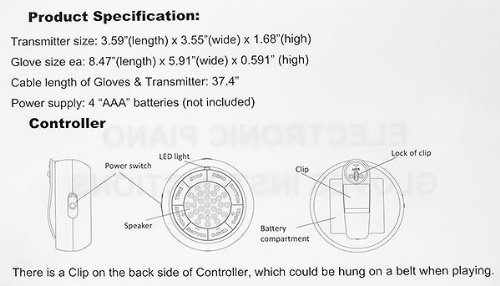 -. Brand : ElementDigital -. EAN : 6921712613408 -. Feature : With speaker / 8 Voices choice / Kinds of music to choose from DEMO / 8 kinds of sound options / Loudspeaker using a convenient USB charging -. PackageQuantity : 1 -. ProductGroup : Musical Instruments -. ProductTypeName : INSTRUMENT_PARTS_AND_ACCESSORIES -. Title : ElementDigital(TM) Lovely Musical Electronic Piano Gloves For You to Play Piano Music On Desk Black Color