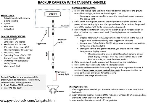 PYvideo Backup Camera Backup Camera with Tailgate Handle for Dodge Ram (2009-2017) for Universal Monitors (RCA) (Color: Black)
