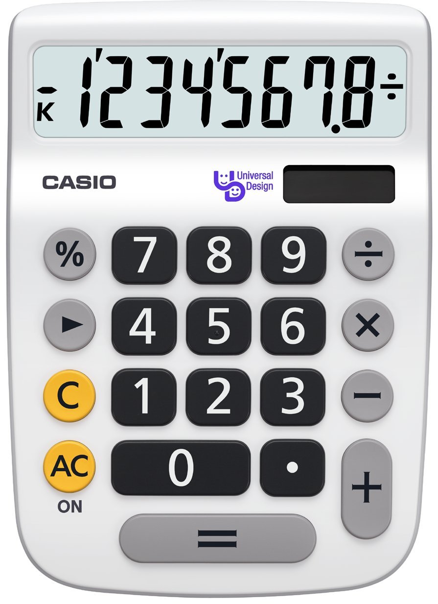 サイズ: ジャスト ●桁数:8 ●電源種類:T・W・P(太陽電池と補助電池の併用)(LR54) ●電池数:1 ●電池寿命:約3年 ●大きさ(奥行×幅×高さ)mm:148×106×18 ●質量(g):95 機能:計算状態表示,マルチ%,四則定数計算,概数計算,桁下げ(シフト),キーロールオーバー機能(早打ち機能) 基本機能と使いやすさを追求したユニバーサルデザイン