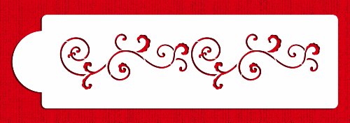 Designer Stencils C438 Small Leafy Scroll Side Cake Stencil, Beige/Semi-Transparent
