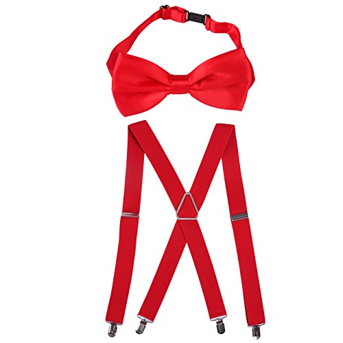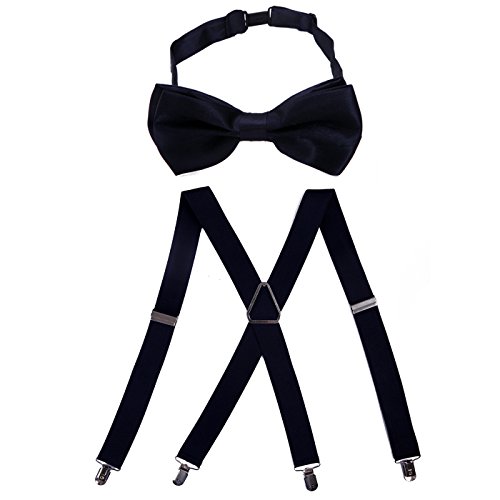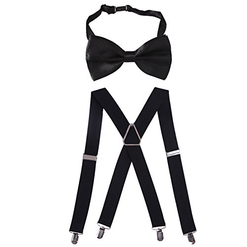 | (HDE)/Accessories/Ties/DIRECT FROM USA/HDE Men's X Back Clip Suspenders and Bowtie Set for Prom Tuxedo Wedding Party |