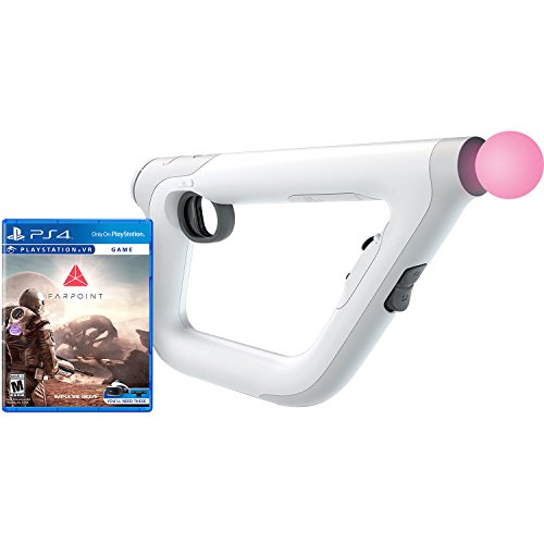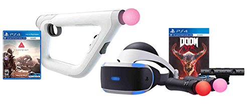 Bundle Includes: PlayStation 4 Pro 1TB Console, VR Headset: CUH-ZVR1, Farpoint Aim Controller Bundle, PSVR Doom Game, Playstation Camera, and 2 Move Motion Controllers. The Sony PlayStation 4 Pro is a gaming console. The console contains a storage capacity of 1TB and a RAM capacity of 8 GB. It is powered by an AMD Jaguar 1.6 GHz CPU und comes with built-in Wi-Fi and Bluetooth. To compete with other players and share your greatest successes, you can use the SHARE button on the wireless controller. A wireless internet connection makes it easy to share data with the gaming community. Saved games can be continued immediately thanks to suspend mode. Via PS Vita you can also play your games on the 5-inch display over Wi-Fi. Weight and measures are 9.2 pounds, and 18.8 x 13.3 x 4.2 inches Farpoint, a riveting VR adventure set on a hostile unknown planet, was created exclusively for PlayStation VR and developed alongside the PlayStation VR Aim Controller. On a mission to pick up scientists studying an anomaly near Jupiter, a sudden rupture nearby sends you and their station crashing onto an unknown alien world. Feel the action with PlayStation VR Aim Controller's precise motion tracking and deeply intuitive controls as you are transported into this unnerving situation. Farpoint, together with the PlayStation VR Aim Controller, sets a new standard for FPS gaming.Feature