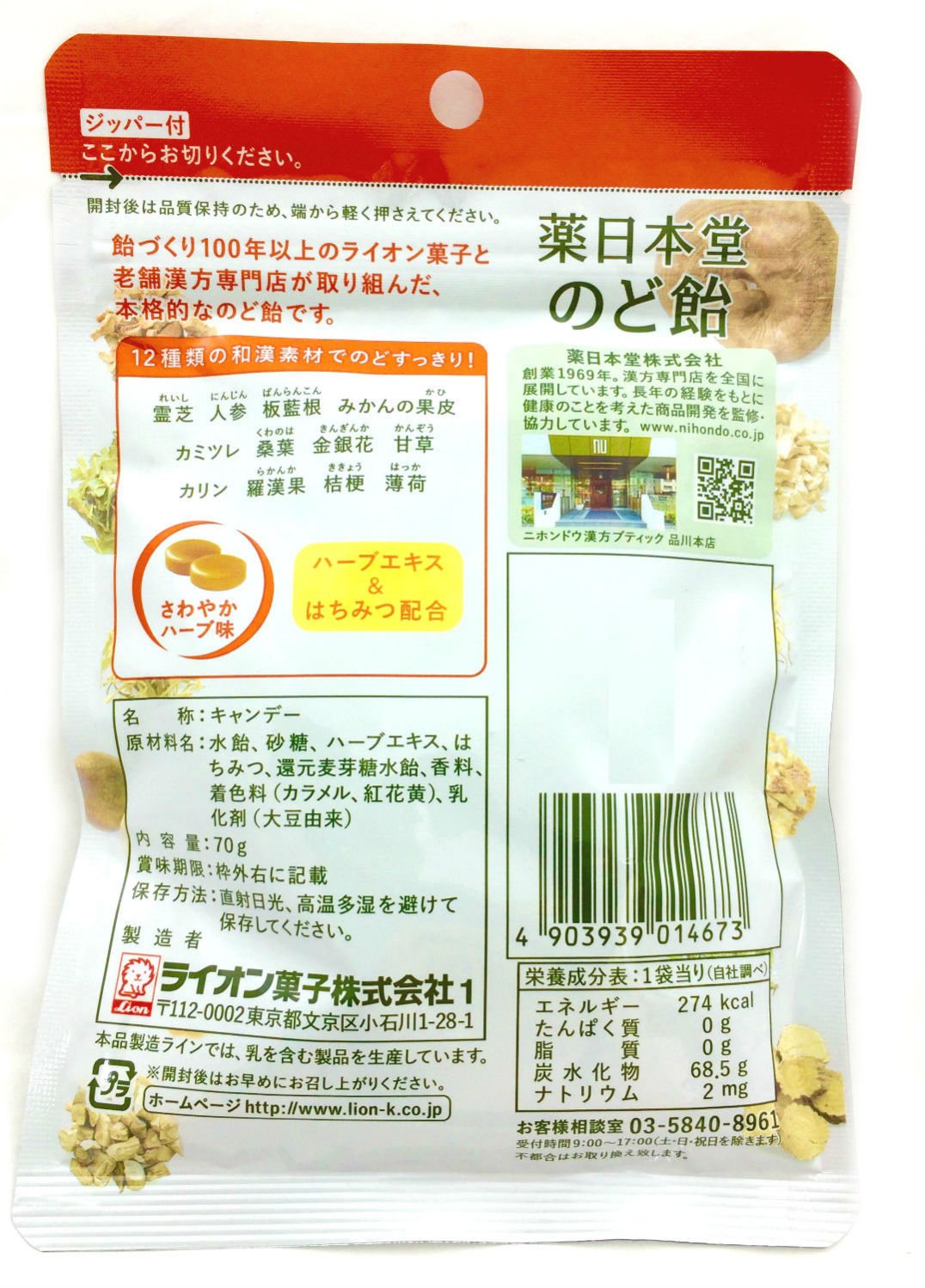 It is a full-fledged throat candy which contains 12 types of Wan Han ingredients.