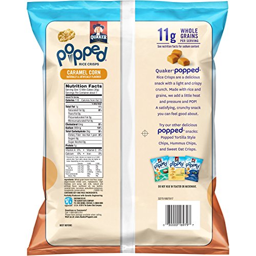 Quaker Popped Rice Crisp Snacks, Gluten Free, Caramel Corn, 7.04 Ounce Bag