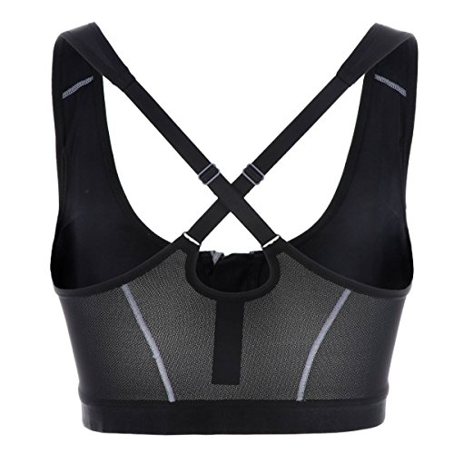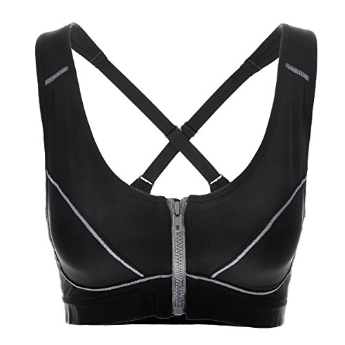 - Title : La Isla Women's High Impact Front Zipper Padded Wirefree X-back Sports Bra Black 34B