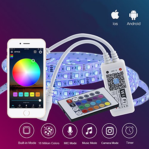 - Control your RGB/RGBW LED strip and LED light from anywhere and anytime with the Free APP ,NO Monthly fee,Also include the IR remote controller for you