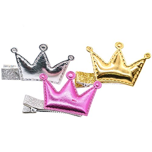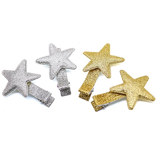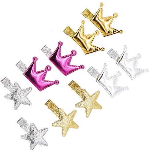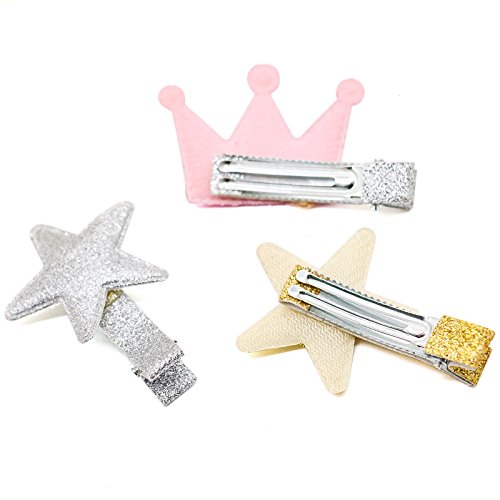 MAISHO Glitter Star and Crown Hair Clips for Baby Girls, 5 Pairs