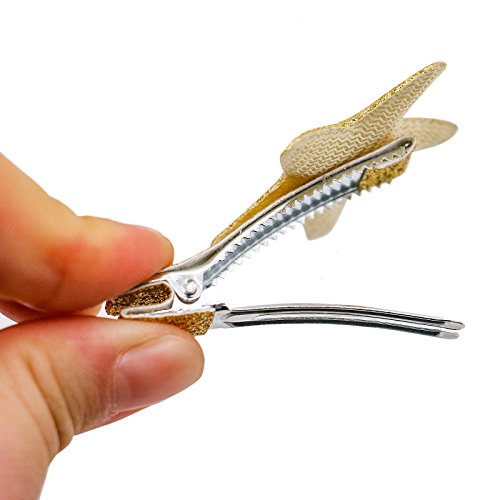Product DescriptionColor: Pink,Gold ,Silver? Material: Glitter fabric ,PU ,Metal Size: approx. 6 x 4 cm / 2.36 x 1.57 inch Package included: 5 Pairs Hair Clips0