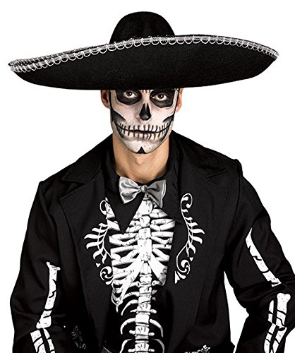 -. Brand : Fun World -. ClothingSize : One Size -. Color : Black -. Department : mens -. Feature : Includes a mariachi hat / Black polyester felt / Silver thread trim / The day of the dead costume and makeup kit is not included -. Label : Fun World -. Manufacturer : Fun World -. Model : 93139 -. MPN : 93139 -. NumberOfItems : 1 -. PackageQuantity : 1 -. PartNumber : 93139 -. ProductGroup : Apparel -. ProductTypeName : ADULT_COSTUME -. Publisher : Fun World -. Size : One Size -. Studio : Fun World -. Title : Day of the Dead Sombrero Costume Accessory -. UPC : 071765054973