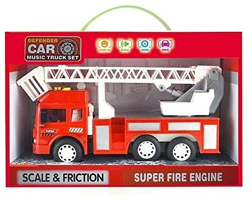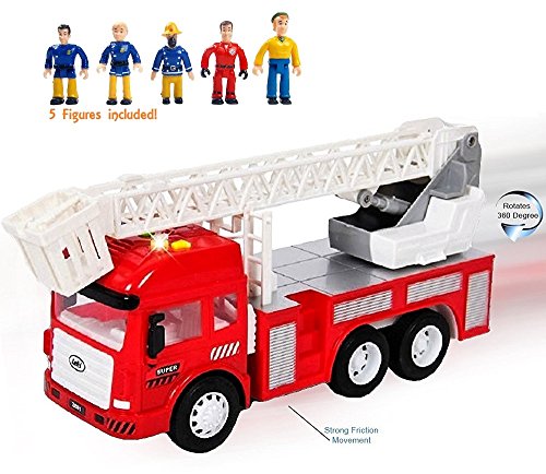 -. Title : Toy Fire Truck with Lights and Sounds - 4 Sirens - Extending Ladder - Powerful Friction Rolling - for Kids & Toddlers