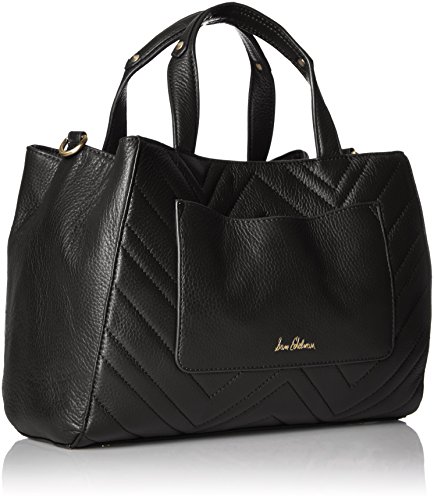 Gianna tote magnetic snap bridge closure quilted front and back vegan leather bottom with feet slip back pocket handles with cone studs detachable vegan leather long shoulder strap with Sam Edelman lobster claws to d rings metal zip vegan leather center compartment inside with Sam Edelman puller twill lining metal zip with Sam Edelman puller and slip pockets inside with vegan leather trim metal bar with Sam Edelman embossed logo inside Sam Edelman triangle logo on back pocket