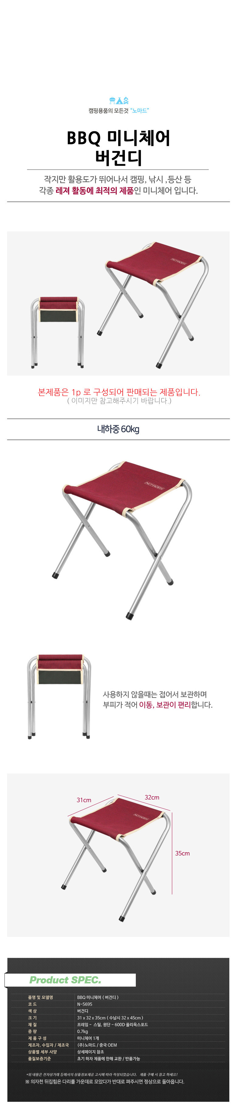 • 품명 BBQ 미니체어 버건디