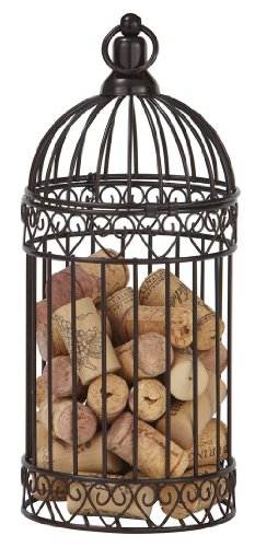 Studio : Counter Art Publisher : Counter Art Binding : Kitchen Product Description This CounterArt wine cork caddy features a wire and sculpted metal construction, to form this attractive home decor accent piece intended to store your used wine corks. The eye-catching design is quite intricate and it stands 10 Inch high, with a dark powder coat finish. A fun way to store your used corks, this piece's silhouette mimics that of a bird cage and has a hinged top that opens for easy access. Its artistic design will liven up your home bar, kitchen or wine cellar and also makes a great gift for the wine lover. 0