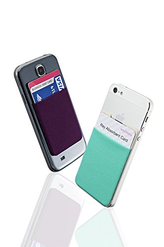 Credit Card Wallet, Sinjimoru Stick-On Wallet functioning as Wallet case, Credit Card Case on iPhones and Androids. Sinji Pouch Basic 3, Mint.
