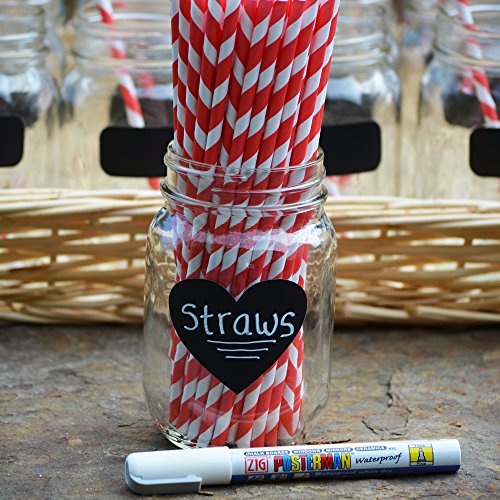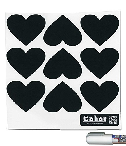 Cohas Chalkboard Labels in Heart Shape includes Liquid Chalk Marker and 27 Labels, Fine Tip, White Marker