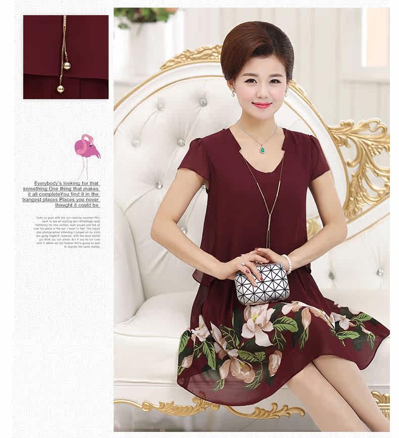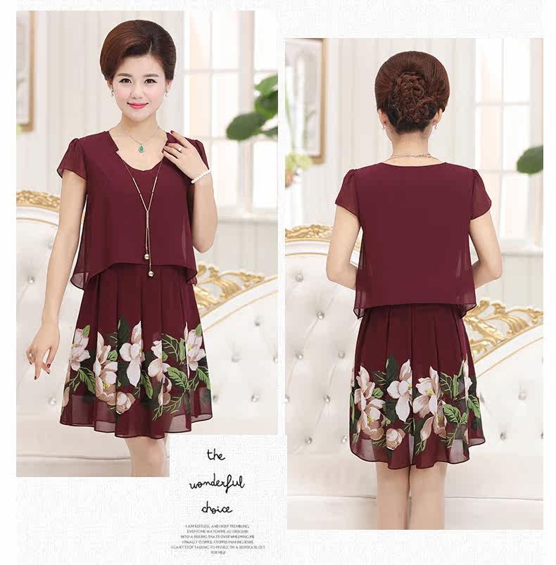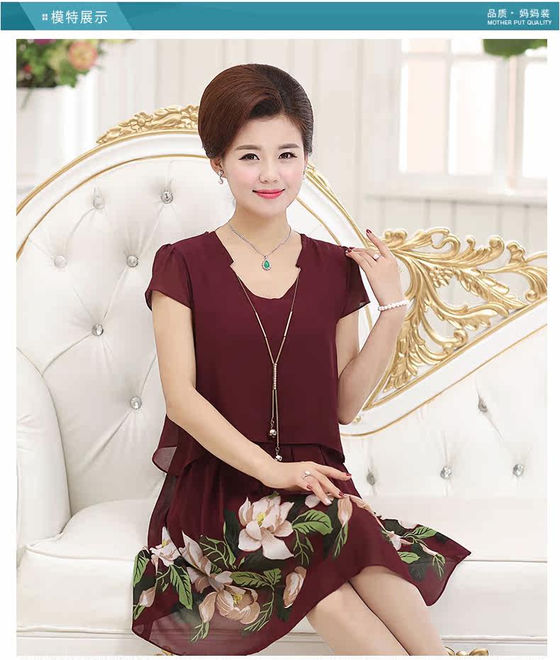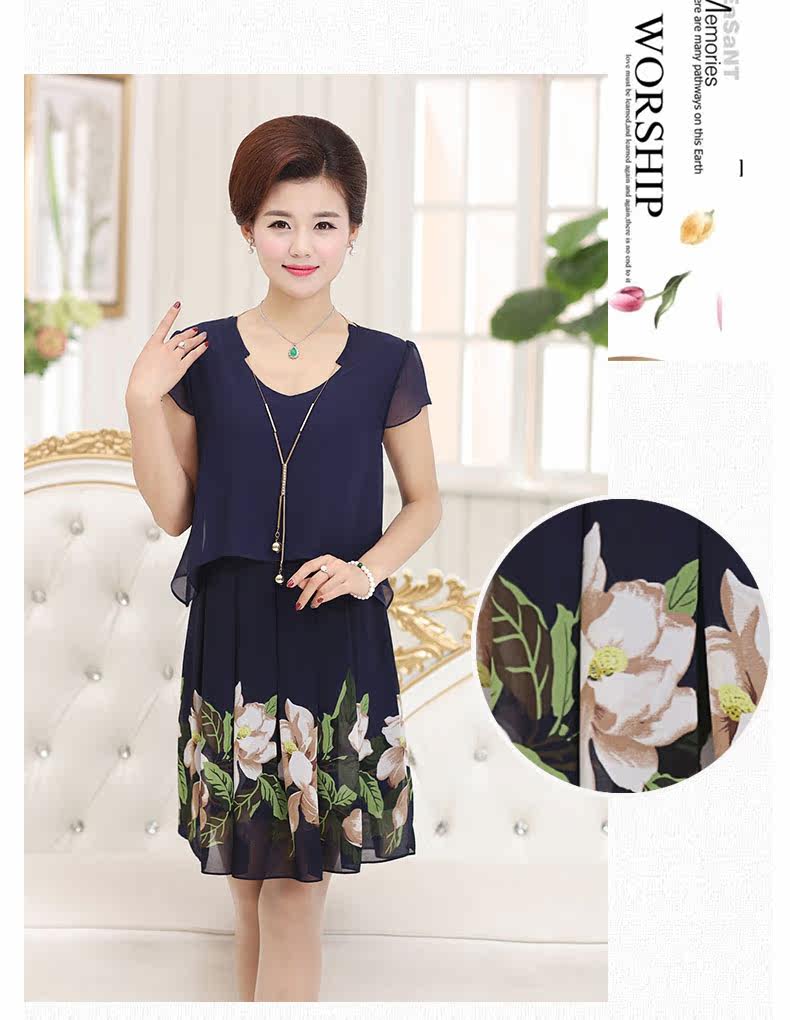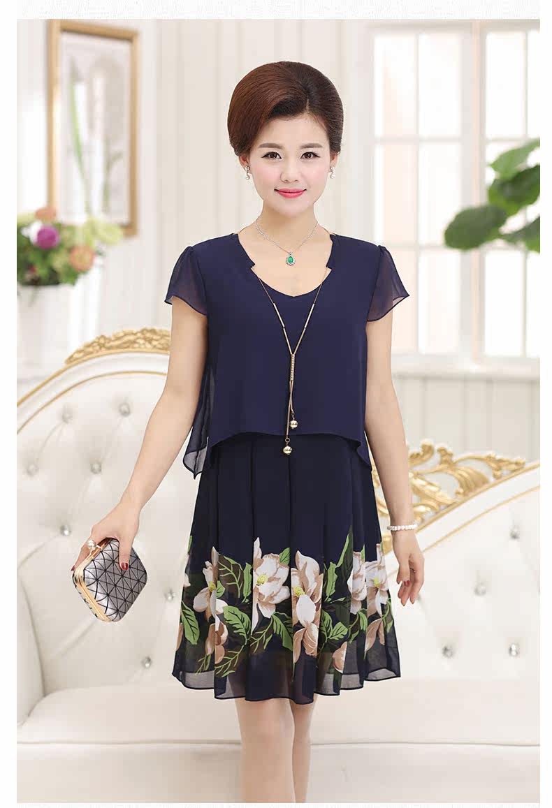 中老年女装夏装雪纺连衣裙中年人女装夏季雪纺裙子40-50岁妈妈装