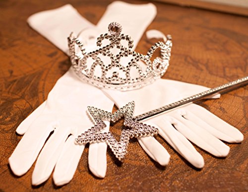 -. Binding : Toy -. Brand : Lilly and the Bee Novelties -. Color : white -. Department : girls -. EAN : 0610079102705 -. Feature : These are must have accessories for every princess / Gloves fit most children ages 3 and up / Silver wand is about 13.5" long / Silver tiara is 5" wide / Comes Packaged in Our Adorable, Exclusive and Reusable plastic Lilly and the Bee Novelties (TM) Drawstring Bag -. IsAdultProduct : 0 -. Label : Lilly and the Bee Novelties -. Manufacturer : Lilly and the Bee Novelties -. MPN : LYSB009CK905K-TOYS -. PackageQuantity : 1 -. PartNumber : LYSB009CK905K-TOYS -. ProductGroup : Toy -. ProductTypeName : TOYS_AND_GAMES -. Publisher : Lilly and the Bee Novelties -. Size : N/A -. Studio : Lilly and the Bee Novelties -. Title : 3 Piece Set: White Princess Gloves with Silver Tiara,Wand and Drawstring Bag -. UPC : 610079102705