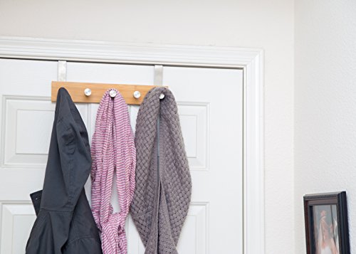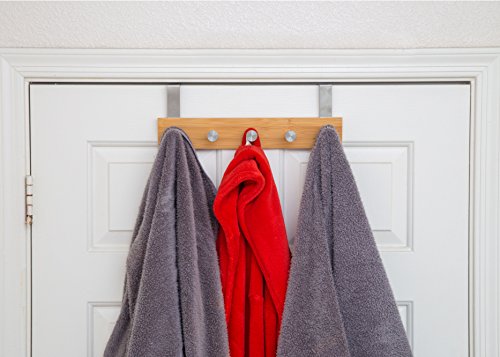 PREMIUM MATERIALS: 100% natural bamboo provides an eco-friendly base for five premium stainless steel hooks and over-the-door hanging arms.