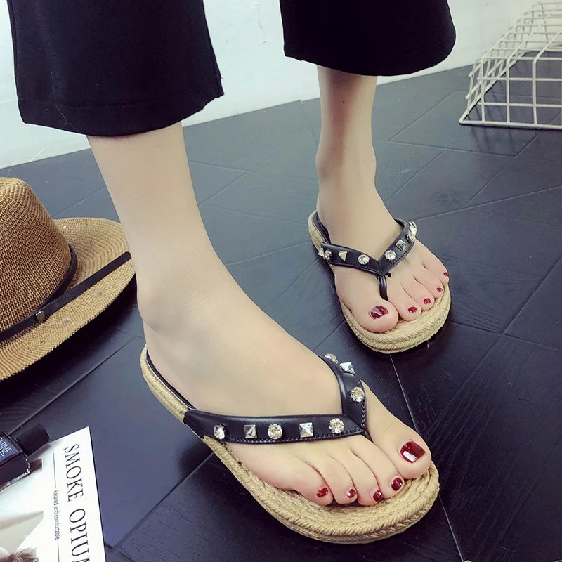 Flip Flops Rhinestone Sandals:Sandals Bohemian Style Slip On