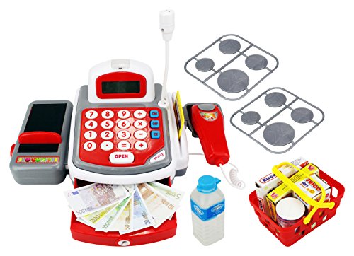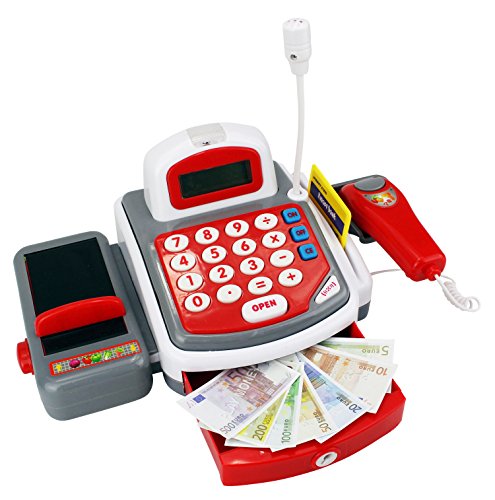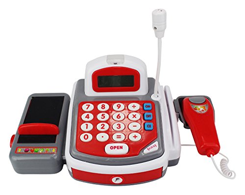 -. Title : KX My Funny Register Pretend Play Battery Operated Toy Cash Register w/ Realistic Scanner w/ Beep, Flashing Light, Money, Credit Card, Groceries