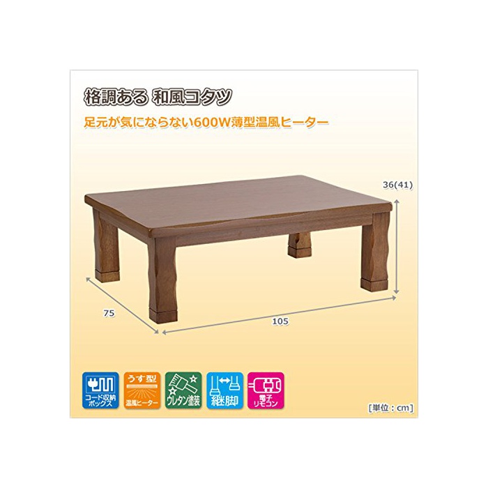 원본상품명: 山善(YAMAZEN) 家具調和風こたつ「衣笠」(脚付)(105×75長方形) 電子リモコン付 WTA-D1051H