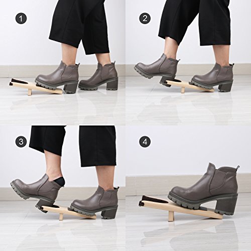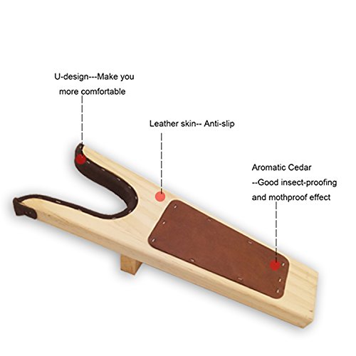 How to use Boot Jack? There are three simple steps : 1. Slide the heel of your boot into the U shaped opening. 2. Place other foot on the leather part of the Jack and apply pressure. 3. Pull your foot out of your boot. It will slide right out of there, without any argument. This particular boot jack is cedar wood and made especially for women's boots. The lining of the U shaped cut out will protect the heel of your boots from any scuffs or scrapes.