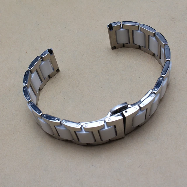 | [해외] 내구성이 높은 품질 세라믹 손목 스테인레스 스틸 금속 화이트 블랙 팔찌 다이아몬드 시계 16 미리메터 18 미리메터 20 미리메터 뜨거운 |