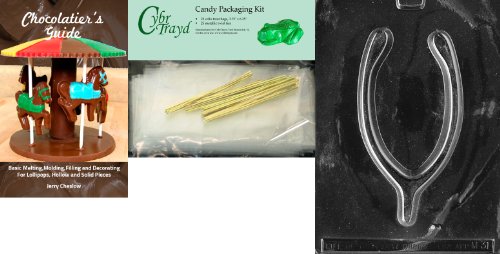 Cybrtrayd "Wishbone" Miscellaneous Chocolate Mold with Chocolatier's Bundle, Includes 25 Cello Bags and 25 Gold Twist Ties