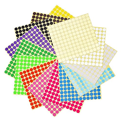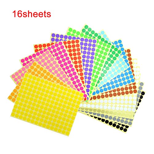 Bonayuanda 16 Sheets 3/8 Inch Round Dot Stickers Color Coding Labels, 16 Different Colors Dot Labels