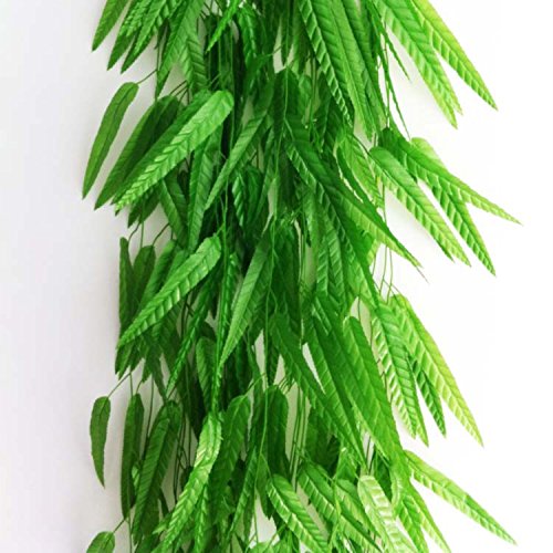 Damene 50pcs 7.2Ft Artificial Flower Wicker Rattan Vine Fake Foliage Leaf Flowers Plants Garland Garden Decoration (Leaf size: 7.51.4")