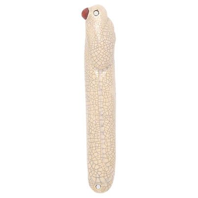 Clay Raku (Hand Molding) Mezuzah - Cream Colored Crackled Style Resembling a Bird Design. Does Not Include Parchment.