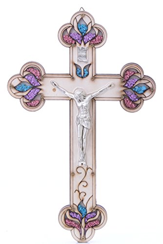 - Beautifully Detailed Pewter Corpus Wall Wood Cross Crucifix Made in the Holy Land by Zuluf Factory HLG017