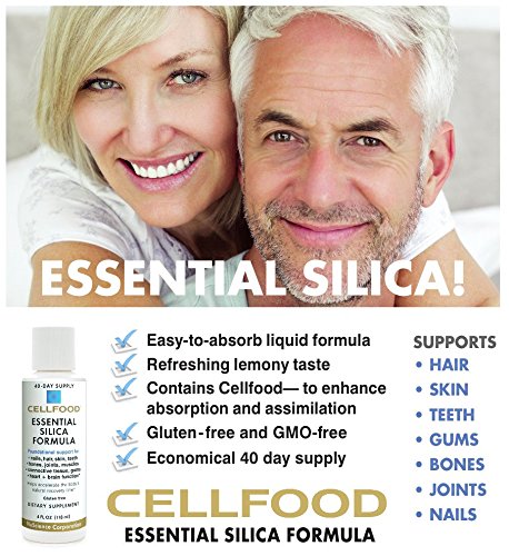 Cellfood Essential Silica contains an easy-to-absorb liquid form of silica and all the additional trace minerals your body needs to optimize its effectiveness- boron, magnesium, managanese, potassium, iron and phosphorous. Silica supplementation can be an aid in supporting healthy bones, joints and cartilage, skin, nails, hair, teeth and gums. And, our formula contains original Cellfood for optimum ease of absorption at the cellular level. It's gluten-free and thiaminase-free. In our youth, our tissues absorb and maintain high levels of silica- enabling our bodies to remain flexible, resilient, and energetic- but as we age, our silica levels steadily decline. It's believed that silica supplementation may be a key factor in helping us maintain a healthier, more youthful body- and in reducing the body's natural recovery time. Studies show that silica counteracts the effects of aluminum on the body and therefore may be important in supporting neurological health. Unlike many other Silica products, it has a pleasant lemony taste.Feature