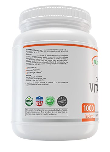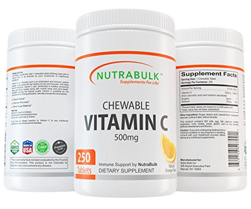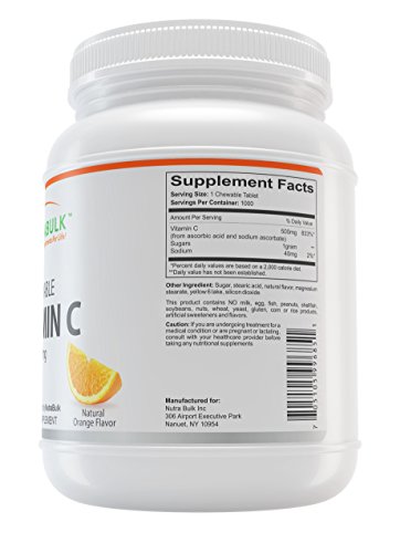 Vitamin C or L-Ascorbic acid as a water soluble vitamin that cannot be stored by the body in significant amounts and must be replenished daily. Vitamin C is an essential nutrient for humans and required for a broad range of essential metabolic reactions.Vitamin C helps fight the cell-damaging free radicals that can lead to oxidative stress and the premature aging of cells. Vitamin C promotes immune system health assisting with the healing of cuts and wounds and helps fend off infections. Vitamin C also assists with the production of collagen and contributes to healthy connective tissue and blood vessels along with overall bone and joint health. NutraBulk sources the highest quality Vitamin C available for the production of our 500mg chewable, orange-flavored tablets. Find out more information about our products on our web page nutrabulk.comFeature