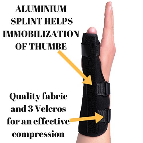 Quality material with 3 adjustable straps to provide you an effective support and to accommodate your wrist size. The brace is made with Aluminum stay which holds thumb firmly in place, with adjustable straps and loop strap to control tension on thumb.