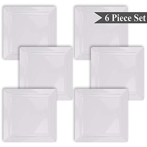 Studio : bogo Brands Publisher : bogo Brands Product Description Square White Melamine Dinner Plates Set of 6 Indoor Outdoor by bogo Brands Add this set of 10.5" square melamine dinner plates to your collection for everyday dining. Made of durable melamine, these plates are break-, chip- and shatter-resistant. Simple white color adds a ceramic-looking elegance to your table. Easy to clean (dishwasher or hand wash), these BPA-free plates are heat resistant; however, they are not recommended for microwave or oven use. Ideal for daily use in the house-casual dining, parties, all meals-you can also use these plates at outdoor events like picnics, camping and tailgate parties. Sturdy enough for commercial use in restaurants, bars or other food services. 0 |