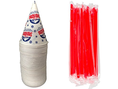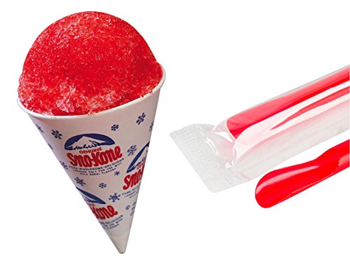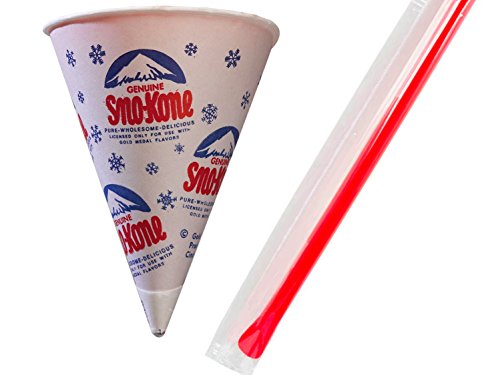 Gold Medal - 50 Retro Snow Cone Cup 6oz & 50 Wrapped Jumbo Spoon Straw Set (50 Pack Set)