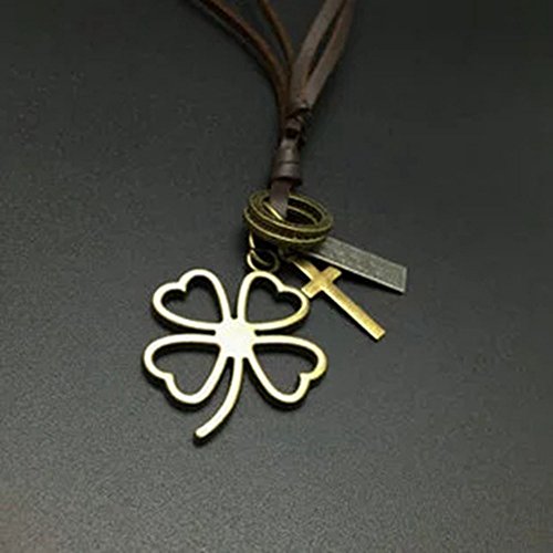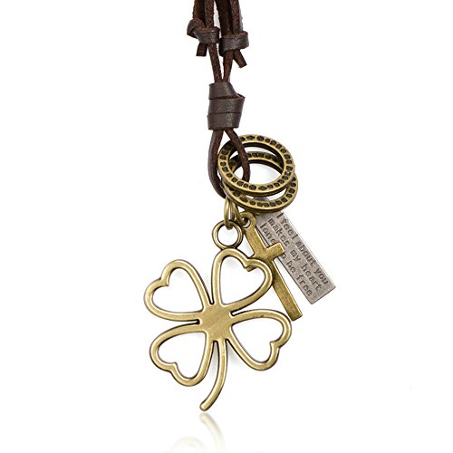 -. Binding : Jewelry -. Brand : Victoria Echo -. Department : girls -. Feature : Materia: Genuine Leather / Perimeter: 19 to 35 inches,Adjustable / Lucky Clover Pendant necklace with soft leather.It's very comfortable to wear / Unisex Accessory. Best chooce to send it to someone you like / It usually takes about 7-15 days for delivery. one necklace & velvet bag -. Label : Victoria Echo -. Manufacturer : Victoria Echo -. Model : Ve-010 -. MPN : Ve-010 -. PartNumber : Ve-010 -. ProductGroup : Jewelry -. ProductTypeName : FASHIONNECKLACEBRACELETANKLET -. Publisher : Victoria Echo -. Studio : Victoria Echo -. Title : Victoria Echo Lucky Bronze Clover Cross Pendant Necklace,Letter Leather Necklace Adjusatble