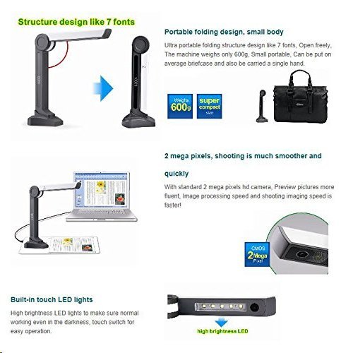 Honsdom USB Document Camera S200L OCR Book Scanner Support JPG & PDF for A4 Document and Book Scan