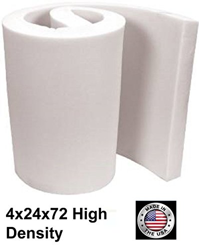 High density foam has a compression rate of 44lbs. It features the perfect amount of cushioning and stiffness. Its soft but still holds its firmness and support for an individual to sit on it without compressing the foam too much. Compression=Firmness. Compression (not density) is what determines firmness. If you dont want a cushion thats hard as a rock or a mattress that sinks when you sit on it, you have to check the compression or ILD number. Compression means the number of pounds necessary to compress a piece of foam 25% and still bounce back to the original thickness. For example, a 4" thick piece of foam that requires 33 lbs. to pack it down 1" and have it return to its full 4" thickness has a 33 lb compression rating or (ILD) -Indention Load Deflection. All foam sheets are sold per sheet - not per yard. Do not open with a box cutter use a ball point pen or a pencil. Start by making a little incision and break it from there-durability:will last 7 to 10 years.Feature