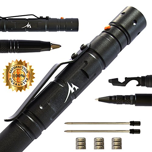 -. Title : Self Defense Tactical Survival Pen - Heavy Duty Emergency 5-In-1 Multitool Pens - Flashlight, Ballpoint Ink Pen, Screwdriver, Wrench & Glass Breaker - Bonus 2 Ink Cartridges, 9 Batteries and Gift Box