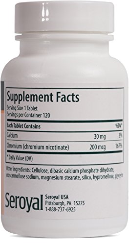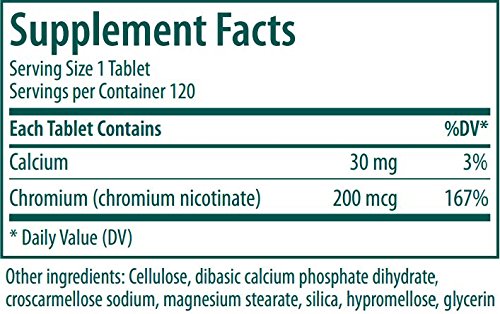 Mineral Supplement Supplement Facts Serving Size: 1 tablet Servings per Container: 120 Each tablet Contains Chromium (chromium nicotinate) 200 mcg Other ingredients: Microcrystalline cellulose, calcium phosphate (1:1), croscarmellose sodium, magnesium stearate, silica, pharmaceutical glazeFeature