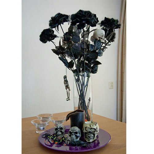 - Black roses are good for Halloween, a fitting addition to the decorations along with black candles, black clothes, table and so on.