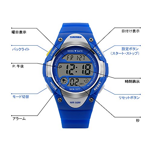 원본상품명: 子供 腕時計 防水 SKMEI 多機能 LED アナログ表示 デジタル表示 デュアルタイム アラ?ム 日付曜日表示 メンズ スポ?ツウォッチ クォ?ツ キッズウォッチ (ブル?①)
